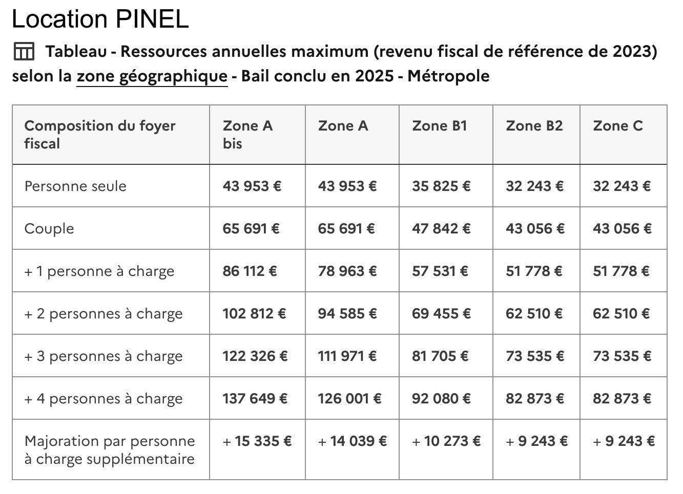 Ce logement est loué en PINEL et soumis à un barème de plafond de revenus à respecter pour le locataire (détail en photo).