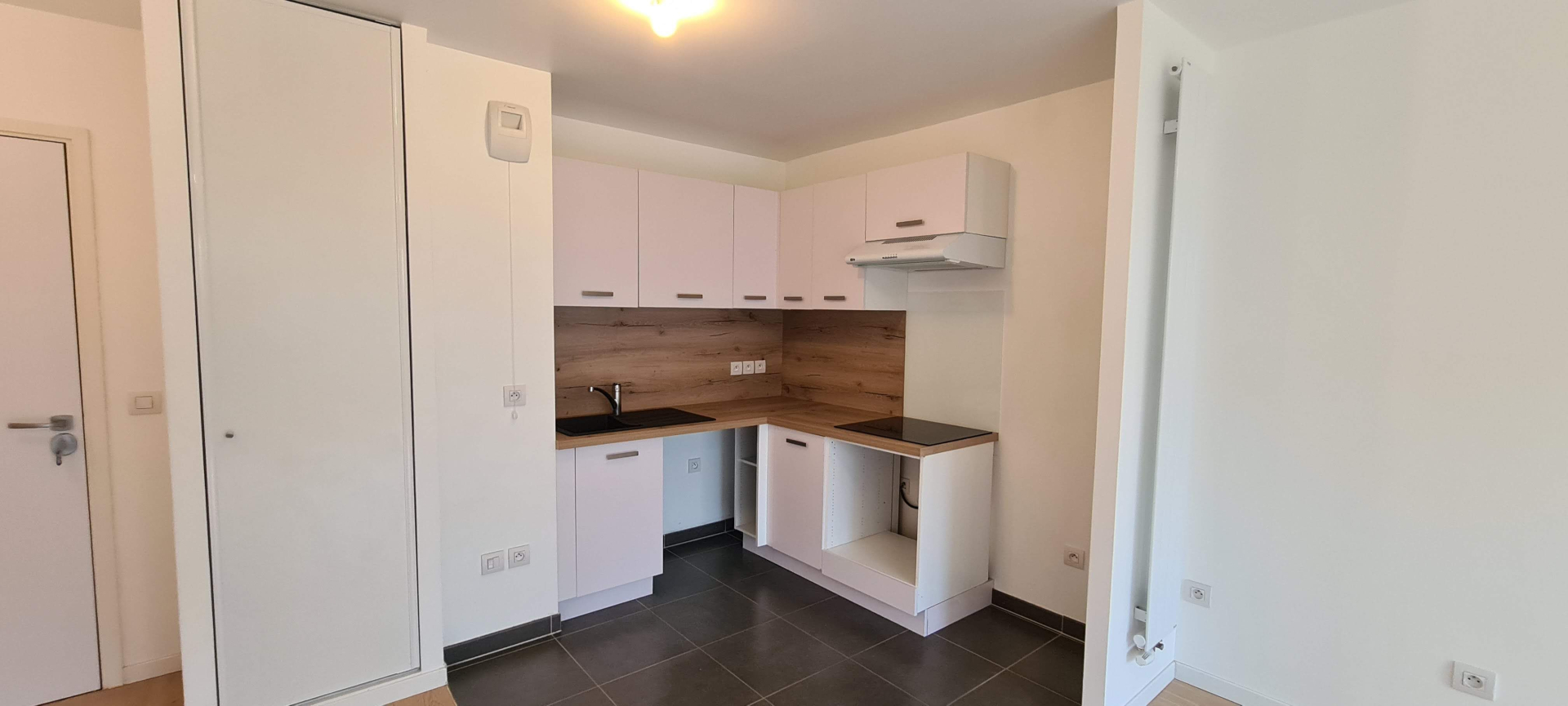 Cet appartement, avec des belles prestations, comprend : Entrée avec visiophone, séjour avec cuisine ouverte aménagée (plaque de cuisson, hotte, plan de travail et meubles de rangement), salle de bains (baignoire et meuble vasque, sèche serviettes) avec WC suspendu, une chambre avec placards. Volets roulants électriques télécommandés avec centralisation.
